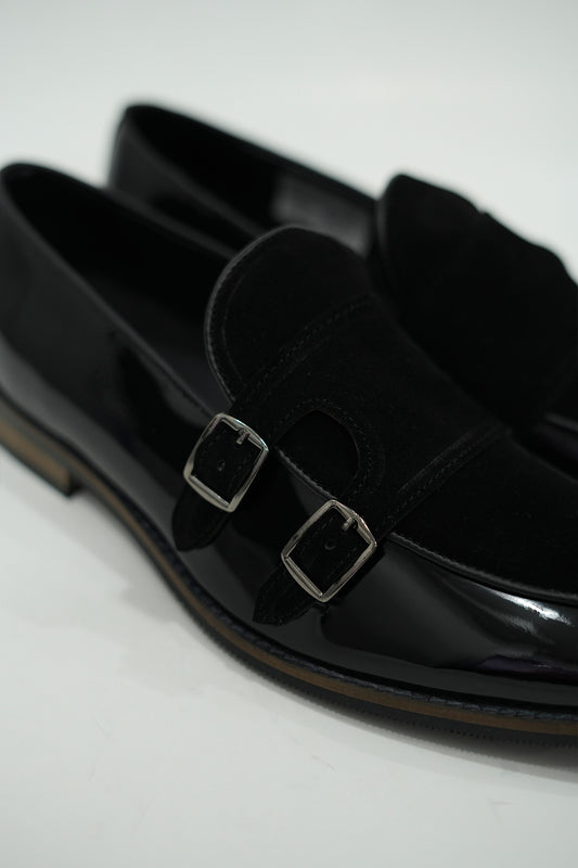 Handcrafted Double Monk Black Shoes