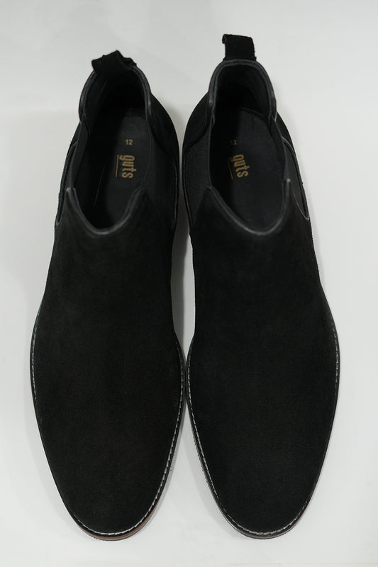 Black Suede Chelsea Boots with Wood Sole