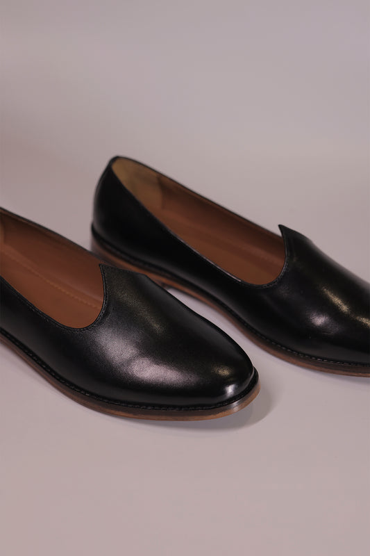 Black Plain Leather Jalsa with Wooden Sole